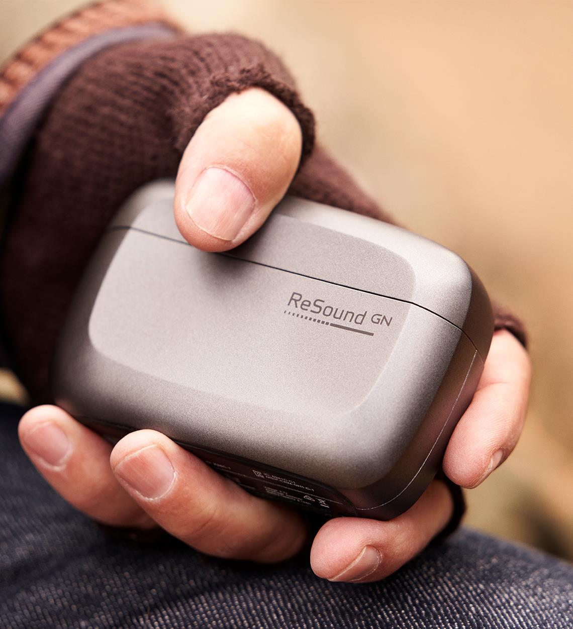 ReSound hearing aids with rechargeable batteries.